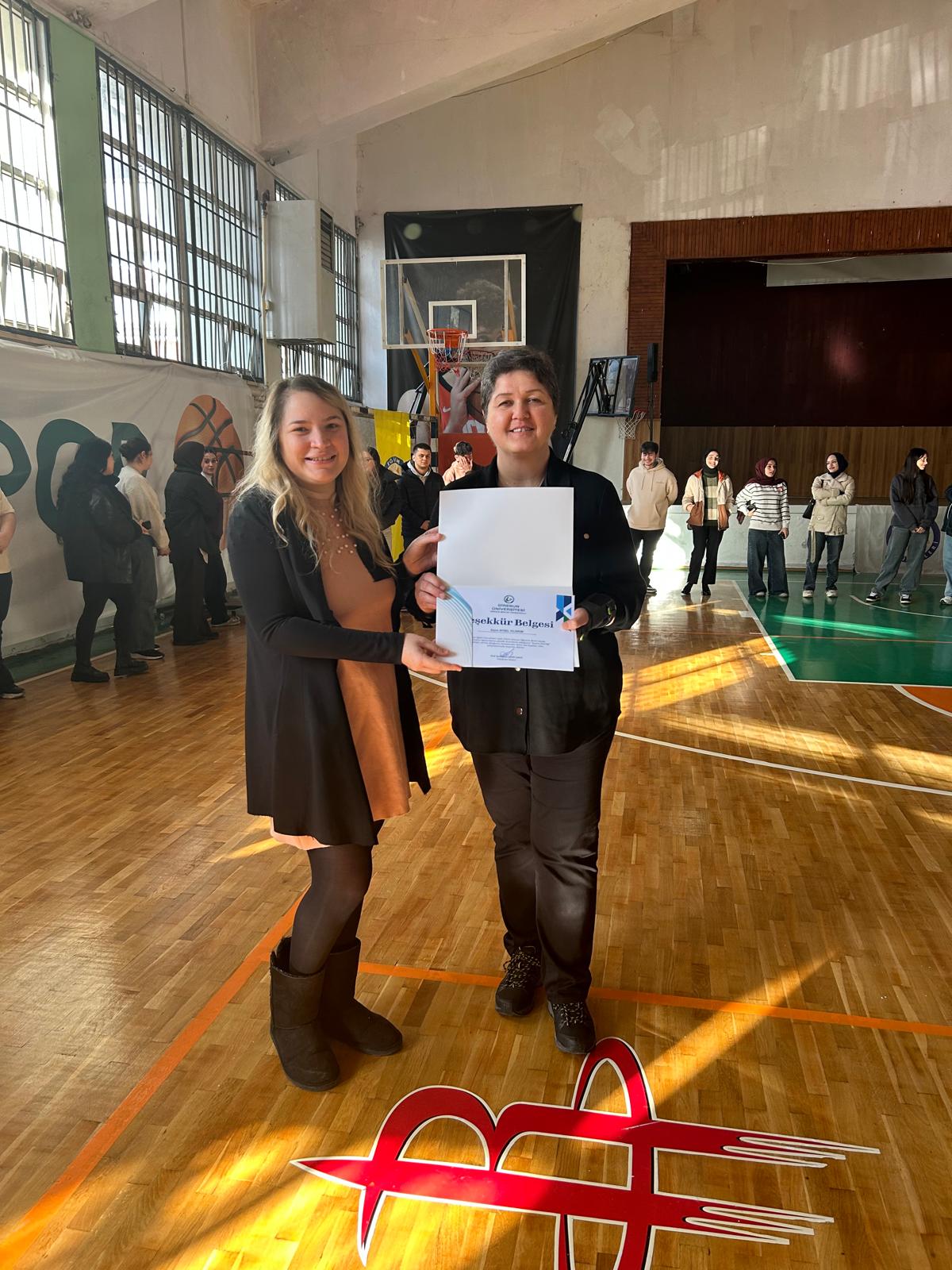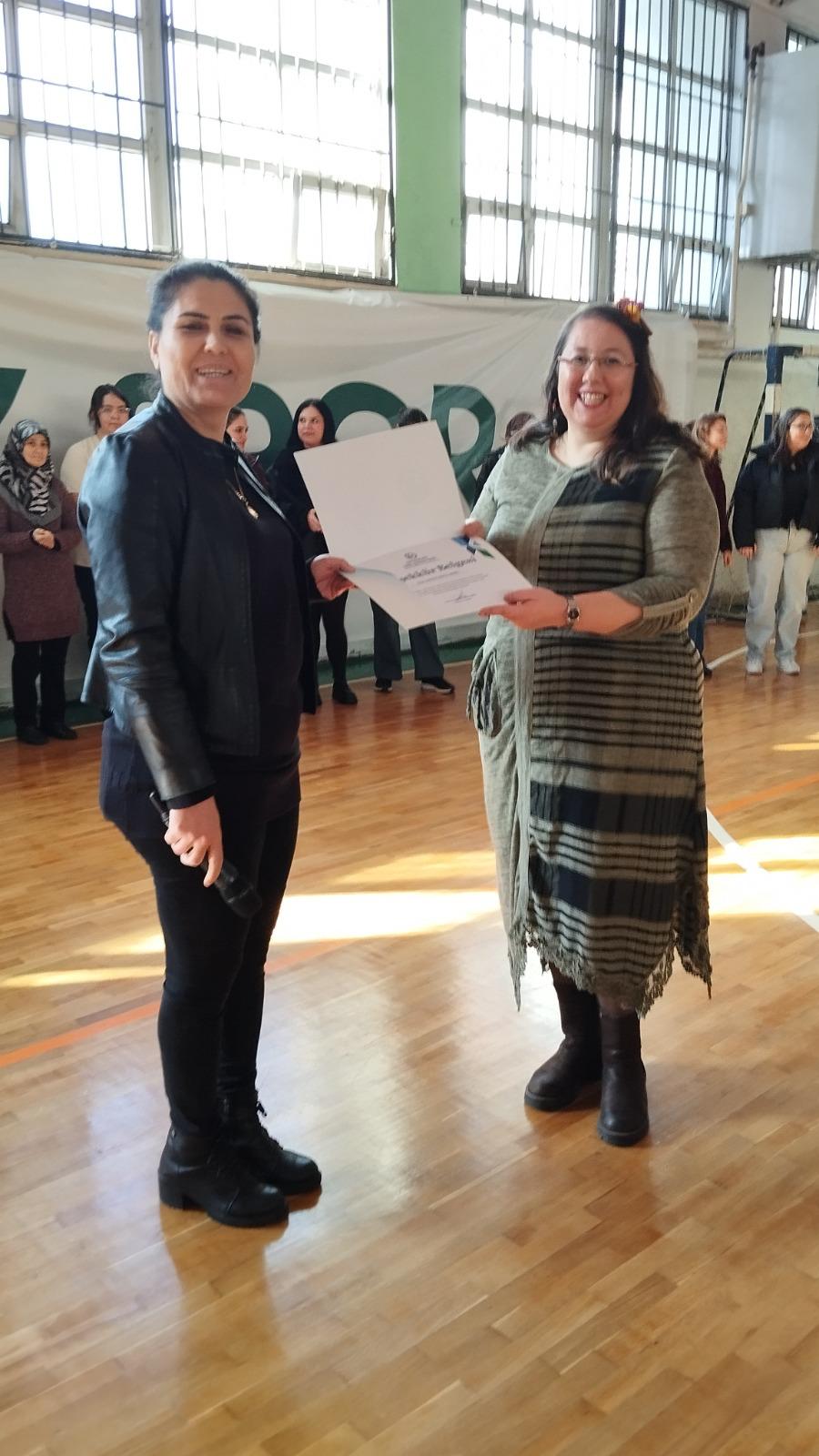 Etkinlik sonunda Drama Lideri Naciye Erkul İnanç ve TEGV sorumlusu Aysel Yıldırım'a Yüksekokulum Müdürümüz Prof. Dr. Çiğdem Şahin Çakır ve Müdür Yardımcısı Dr. Öğr. Üyesi Burcu Turan Çimşir tarafından teşekkür belgesi takdim edildi.