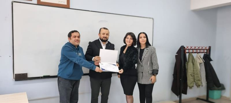 Soru-cevap şeklinde akıcı bir şekilde ilerleyen etkinliğin sonunda Bölüm Başkanı Dr. Öğr. Üyesi Hakan Benek, Öğr. Gör. Seval Coşkun Ateş ve dersin koordinatörü Öğr. Gör. Cansu TOYGA, ASLIM’a değerli paylaşımları ve mevcut yoğunluğu içinde zaman ayırdığı için teşekkürlerini sunarak kendisine teşekkür belgesini takdim ettiler. Deneyimlerini, iş süreç ve hikayelerini öğrencilerimize samimi bir tavırla aktaran ve onlara girişimcilik ve özellikle hayat konusunda yararlı tavsiyelerde bulunarak destekleyici bir yaklaşım gösteren KARDAĞ Yönetim Kurulu Başkanı Hakan ASLIM’a teşekkür ediyor, mevcut iş süreçlerinde başarılarının devamını diliyoruz.