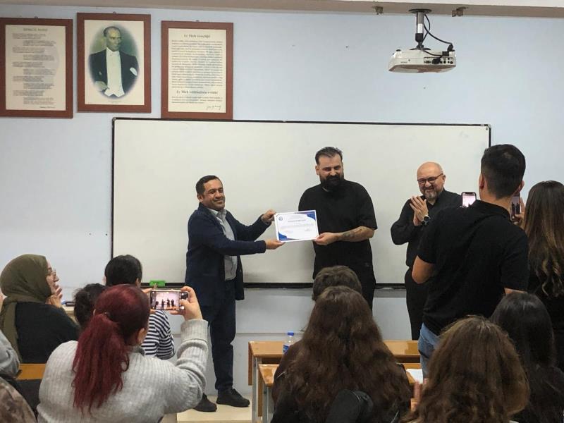 Eğlenceli ve keyifli geçen etkinliğin sonunda, ziyaretleri ile bizleri onurlandıran değerli mezunumuz Yasin Aydın’a, Seyahat, Turizm ve Eğlence Hizmetleri Bölüm Başkanı Dr Öğr. Üyesi Hakan BENEK tarafından “Teşekkür Belgesi” takdim edilmiştir. Değerli mezunumuza hayat boyu başarı dileriz.
