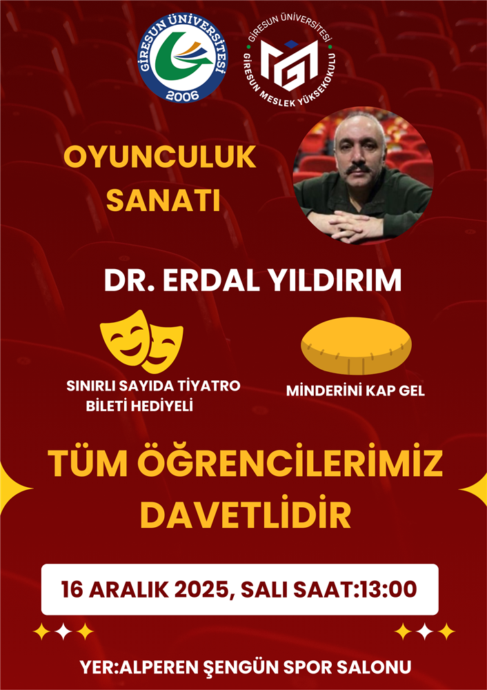 Giresun Meslek Yüksekokulu tarafından organize edilen “Oyunculuk Sanatı” başlıklı söyleşiye tüm öğrencilerimiz davetlidir.