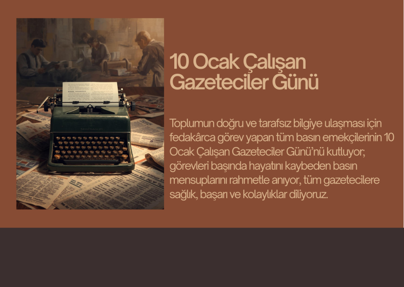 Toplumun doğru ve tarafsız bilgiye ulaşması için fedakârca görev yapan tüm basın emekçilerinin 10 Ocak Çalışan Gazeteciler Günü’nü kutluyor; görevleri başında hayatını kaybeden basın mensuplarını rahmetle anıyor, tüm gazetecilere sağlık, başarı ve kolaylıklar diliyoruz.