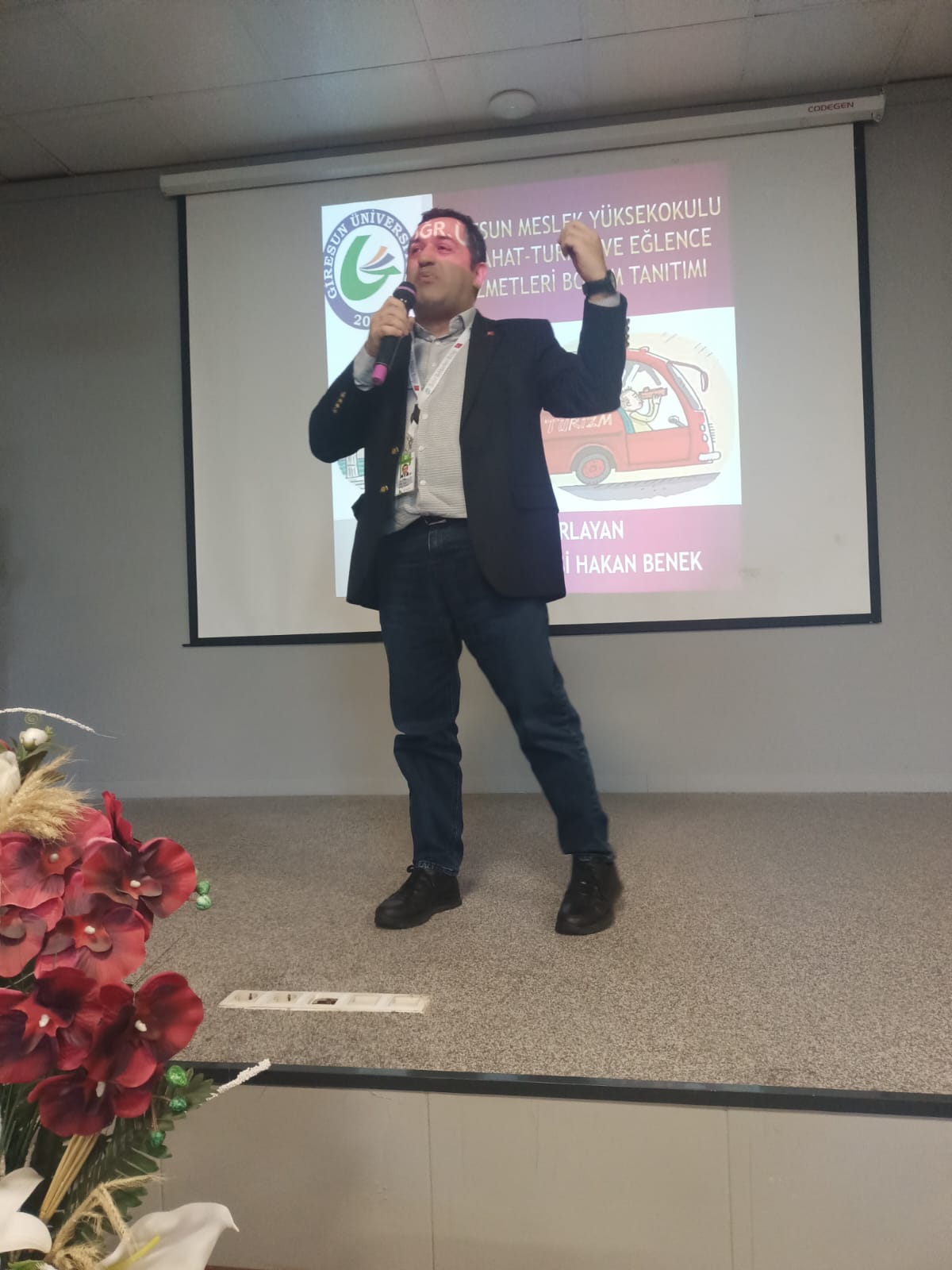 Söyleşide Turizm ve Seyahat Hizmetleri Bölüm Başkanı Dr. Öğr. Üyesi Hakan Benek, üniversite eğitiminin bireysel ve mesleki gelişimdeki rolüne dikkat çekerek bölümün eğitim yapısı, uygulamalı dersleri ve mezuniyet sonrası kariyer olanakları hakkında bilgilendirici bir sunum gerçekleştirdi. Benek, üniversite eğitiminin öğrencilerin sektöre daha donanımlı bireyler olarak hazırlanmasında önemli bir basamak olduğunu vurguladı.