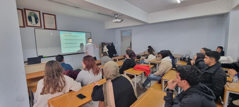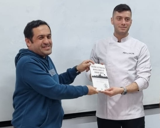 “Yiyecek-İçecek Hizmetleri Yönetimi” dersi kapsamında gerçekleşen etkinliğe; yiyecek-içecek sektöründe dış paydaş konumuna gelen 2021 yılı mezunumuz Mert ÇAKIR, kariyer yolculuğunu anlatmak üzere öğrencilerle bir araya geldi. Çocukluktan beri baba mesleği aşçılığa olan tutkusunu profesyonel bir boyuta taşımayı hedefleyen mezunumuz; sektörü doğru analiz etmek ve gerekli sertifikalarla donanım kazanmak adına bu bölümü okumanın, kariyer yolculuğunda kritik bir basamak olduğunu vurguladı.
